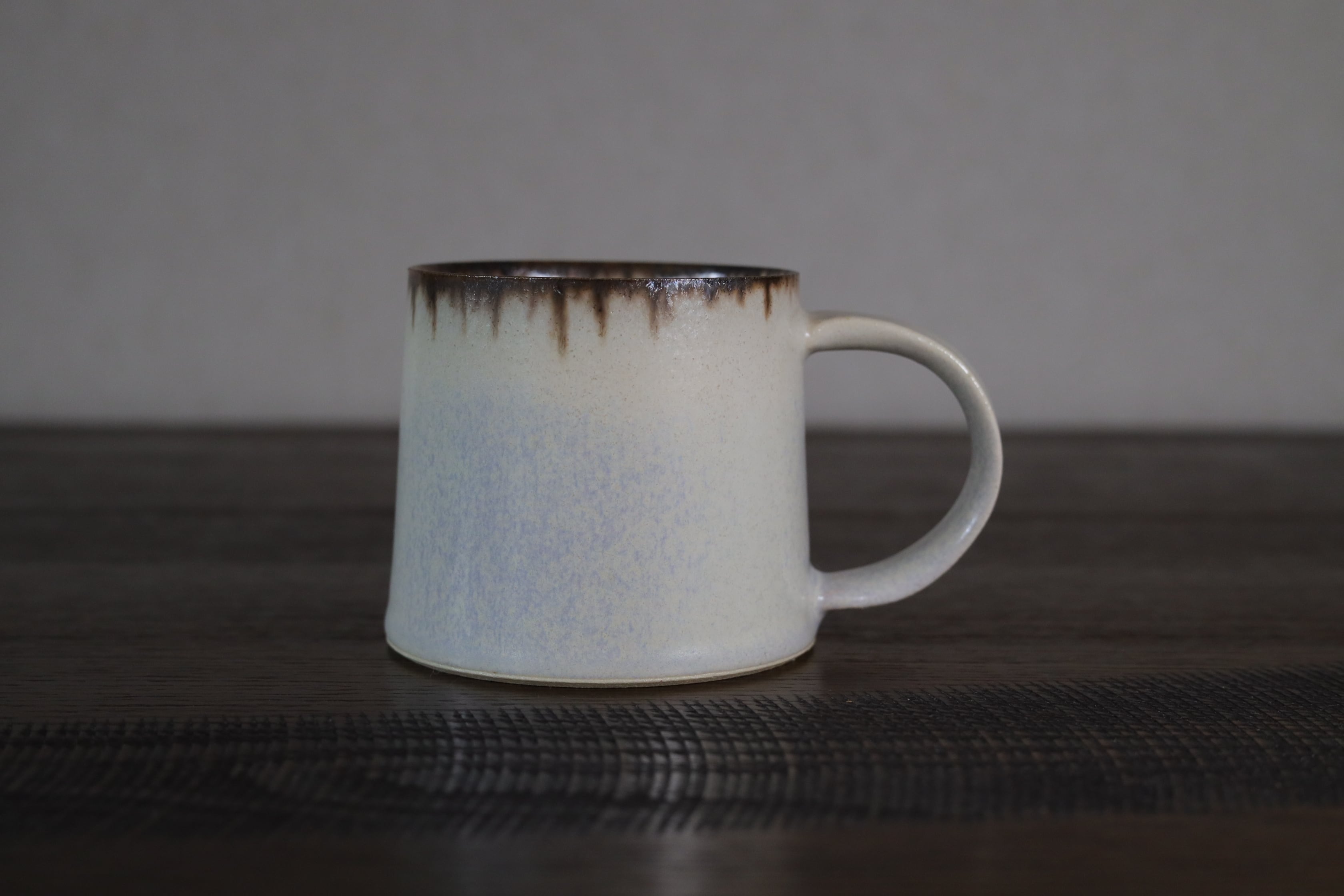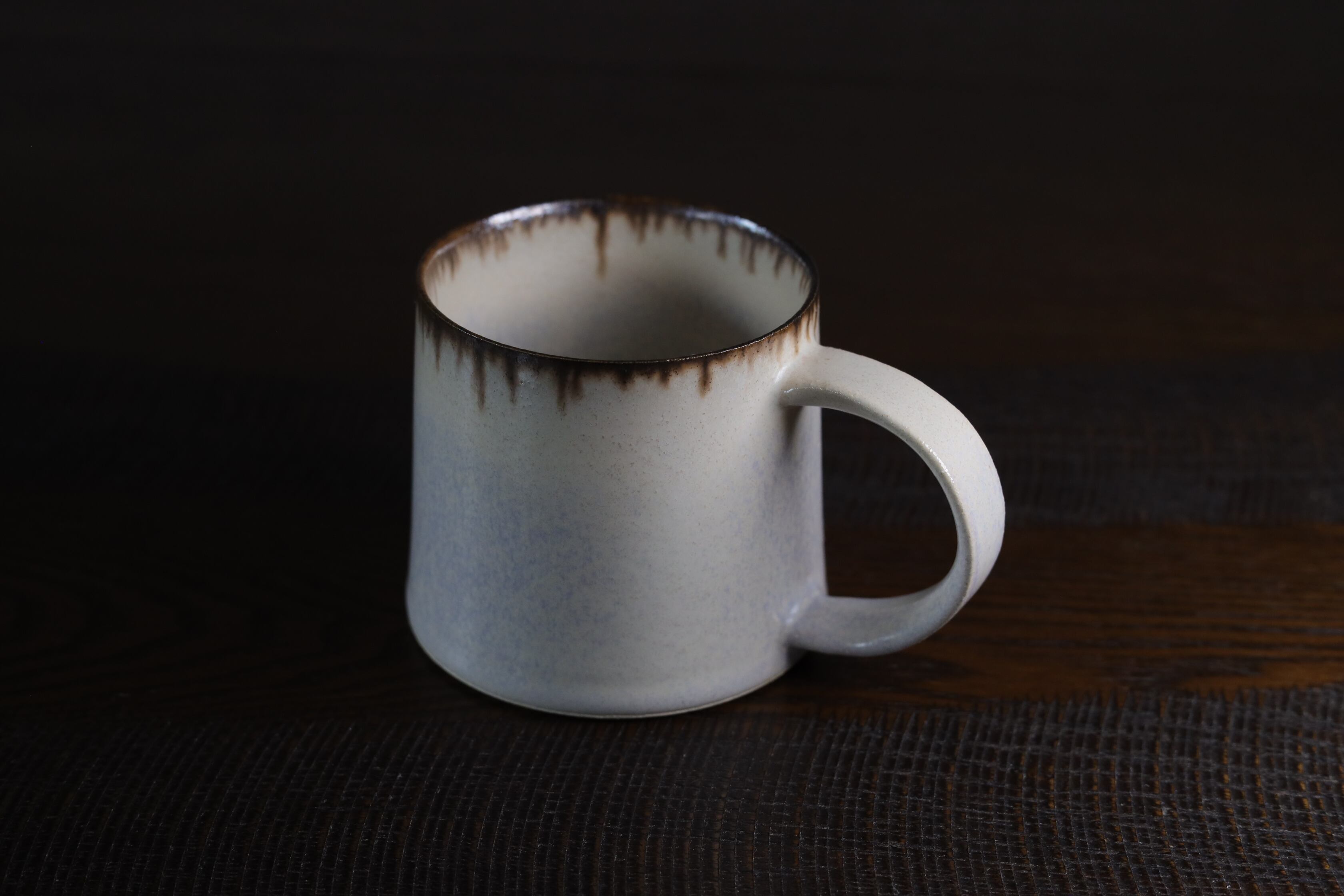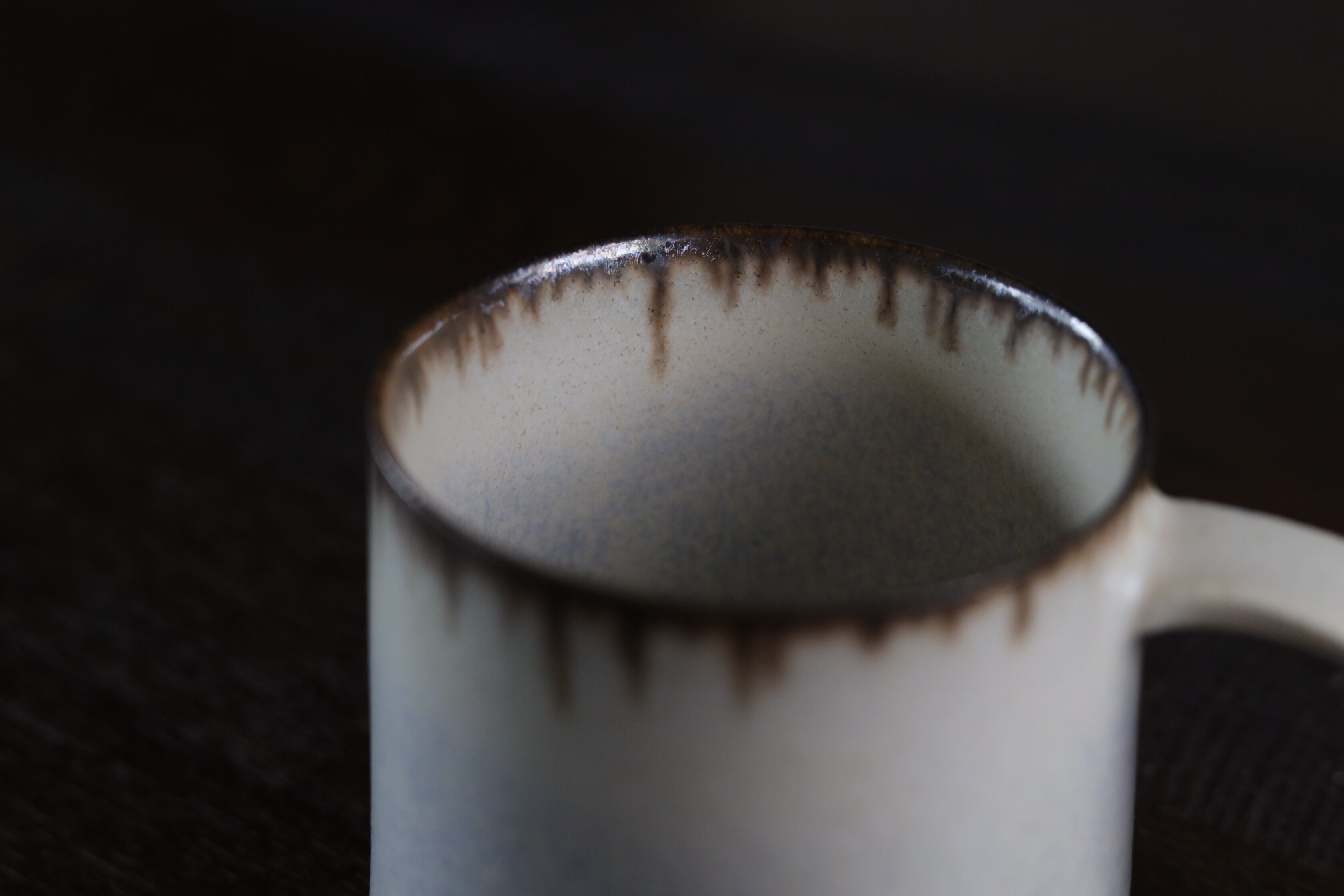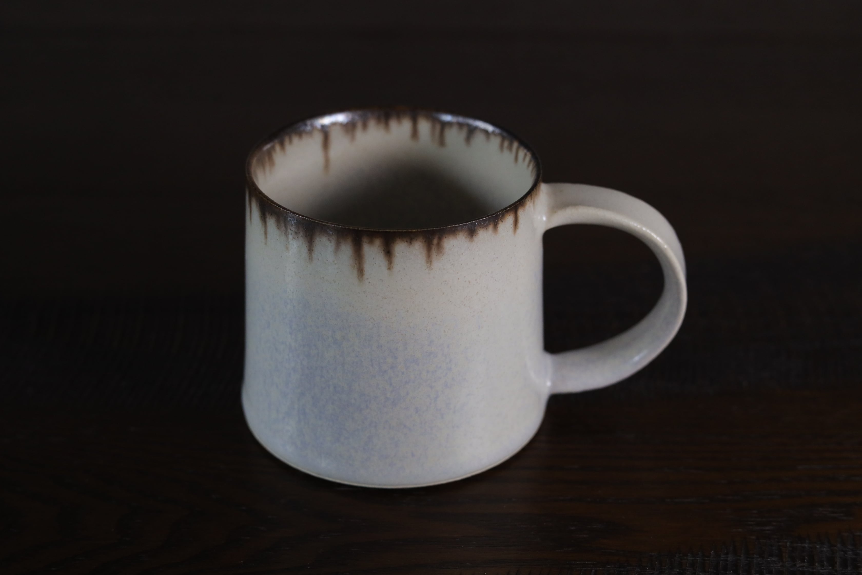 ストレートなフォルムと淡いブルーの釉薬が織りなす静かな佇まいは、どんな飲み物にもよく合い、日々のティータイムにやさしい彩りを添えてくれます。