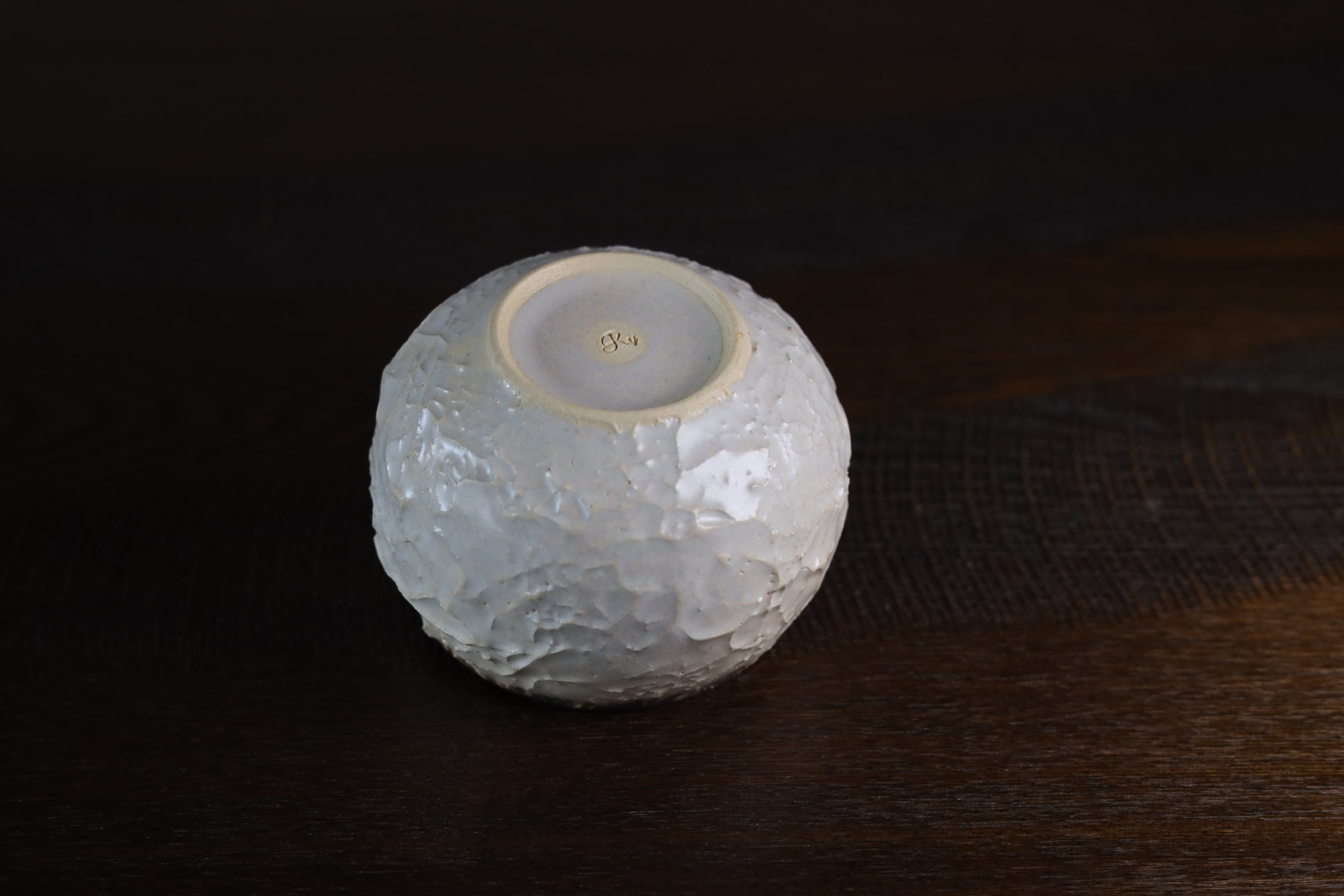 丸みのあるフォルムと、ひび割れのような独特の凹凸が印象的な小鉢。
