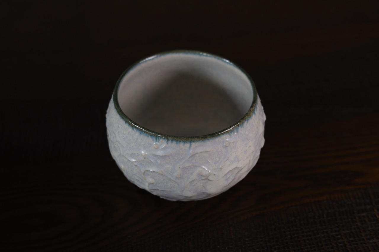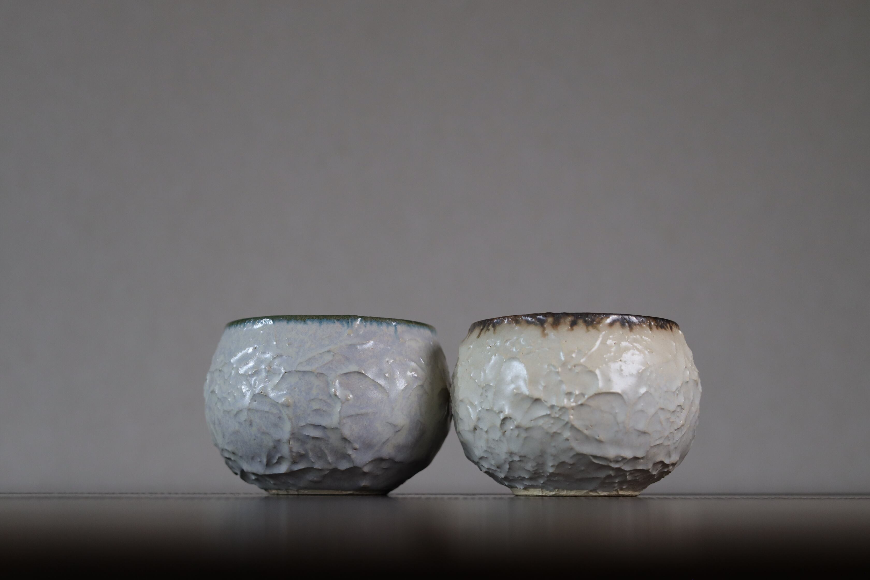 スポンジで泥化粧を施す技法により、表面には自然な凹凸と陰影が生まれ、まるで雪や花びらのようなやさしい質感に仕上がっています。